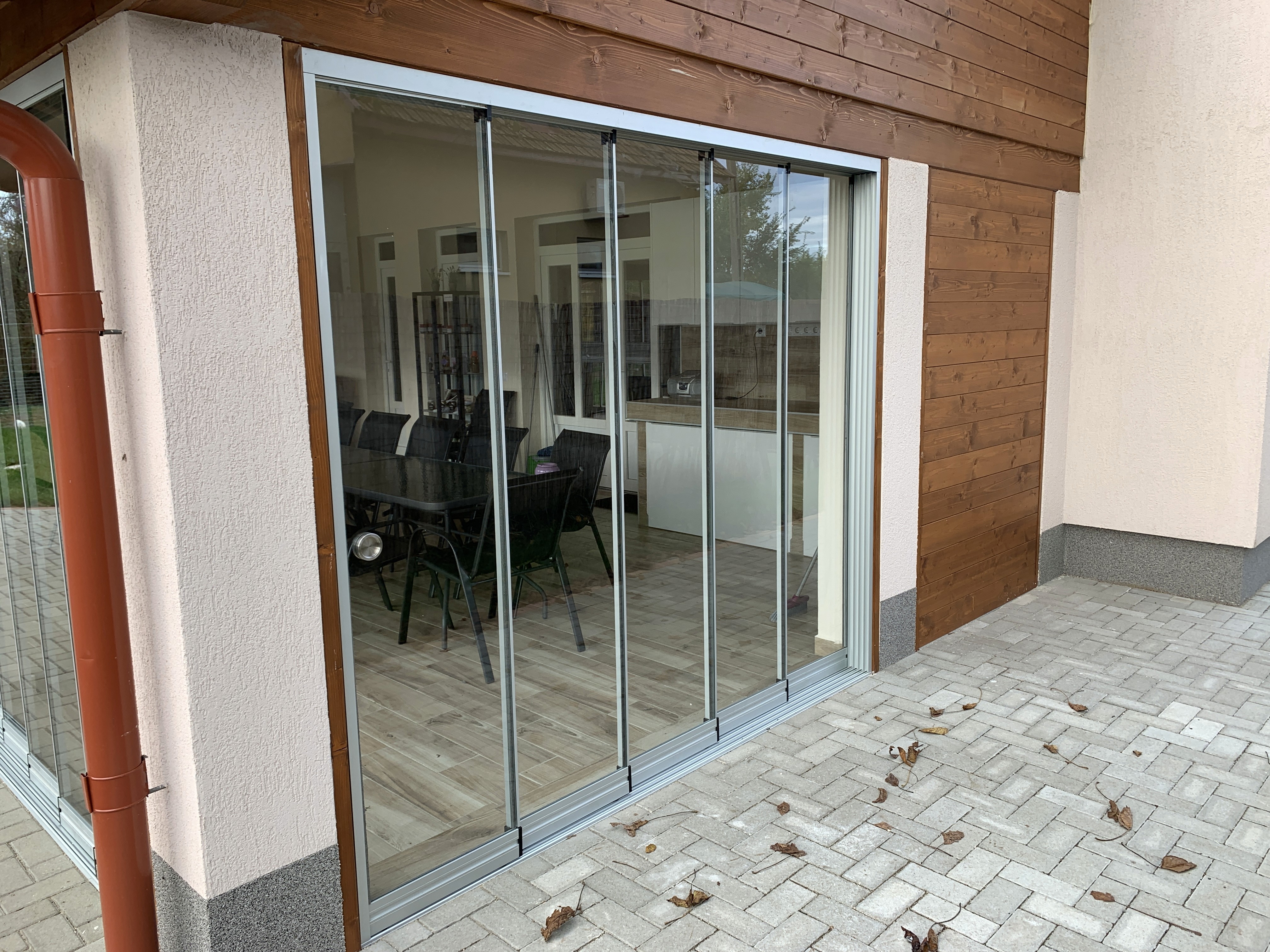 Monolitikus (nem hőszigetelt üvegből készülő) eltolható üvegfalak, télikert lezárások készítése. Választható színben készülő keret, zárral vagy zár nélkül, egy mozdulattal elválasztható vagy megnyitható a két tér.